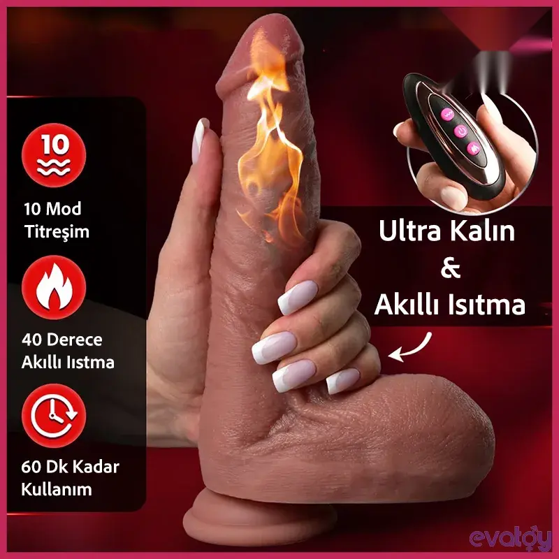 Big Boy Büyük gerçekçi ileri geri hareketli ve ısıtmalı uzaktan kumandalı vibratör, gerçek damarlar ve yumuşak kafa ile en gerçekçi görünüme sahiptir. Maksimum çapı 6 cm ve çalışma uzunluğu 18 cm’dir.