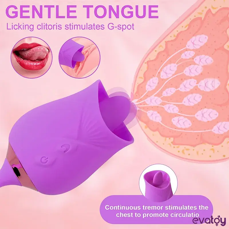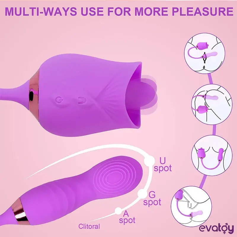Evatoy Lick Rose Yalama, Titreşim ve Oynar Başlı Vibratör, 10 frekanslı titreşimli. yalama. oynar başlık modlu yeni gül vibratörü. güçlü bir motor. her tutkunuzu uyandıracak. Size daha lüks bir zevk getirecek.
