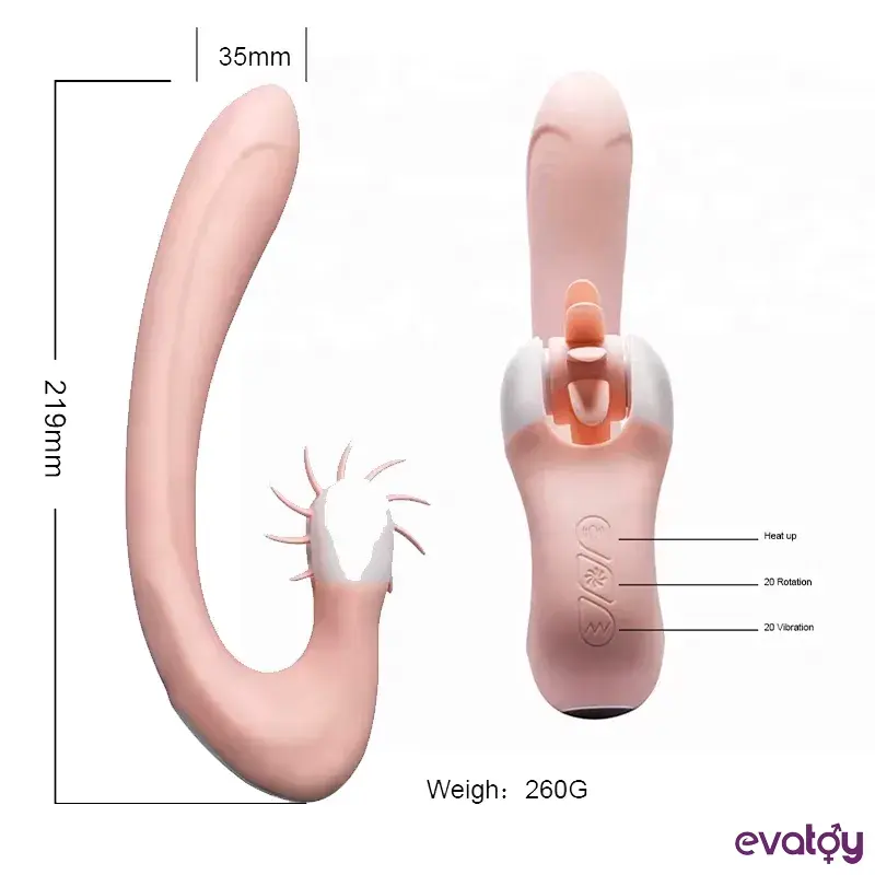 Onlar sayesinde iki yer aynı anda uyarılıyor. Uzun, kavisli vibratör vajinanızı ve G noktanızı şımartacak, dönen eleman ise klitorisinize inanılmaz bakım yapacak.